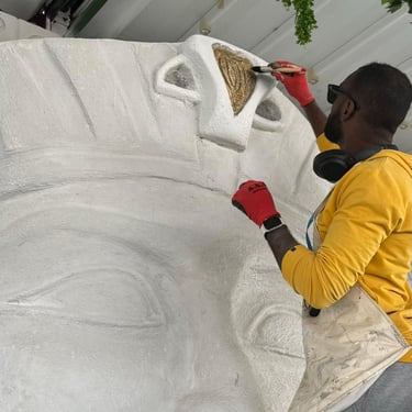تنفيذ ونحت جداريات بارزة تجسد هوية المكان وتندمج معها بدقة عالية وتفاصيل احترافية تضيف لمسة فنية راقية
