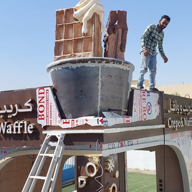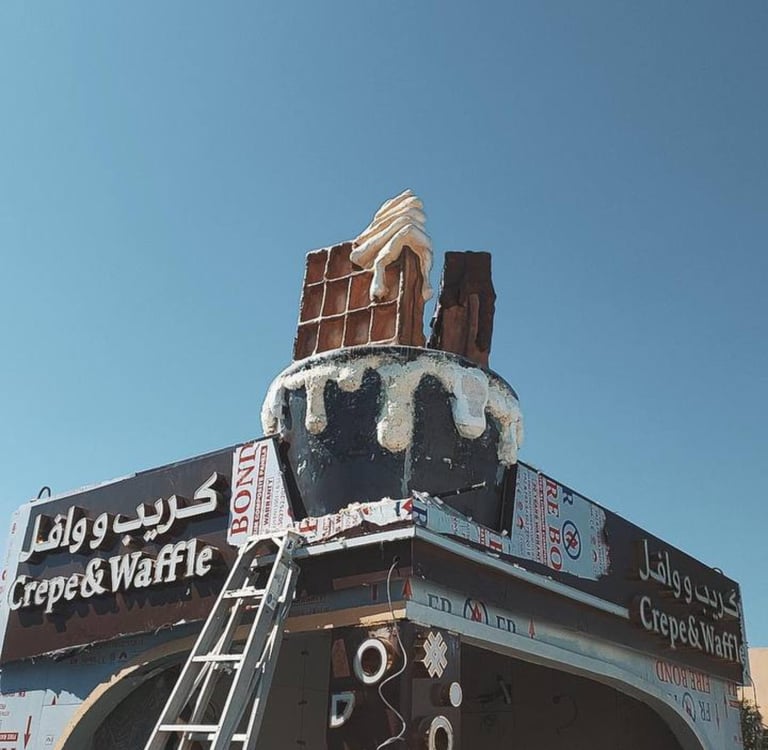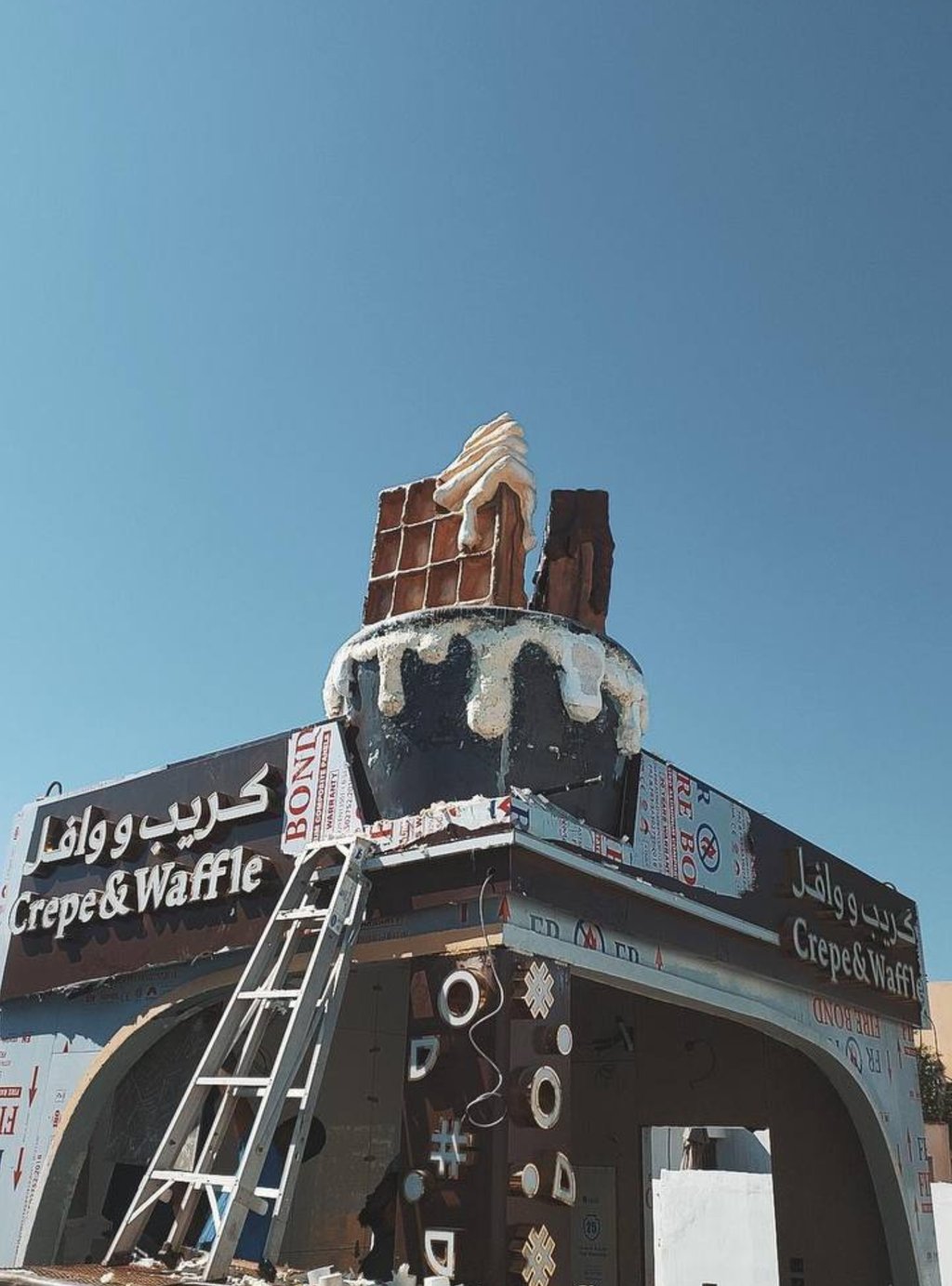 نفّذتُ أول كشك لشركة كريب ووافل بعمل نحتي صُمّم ليكون أداة جذب تسويقية بصرية قبل أن يكون عنصرًا ديكوريًا.