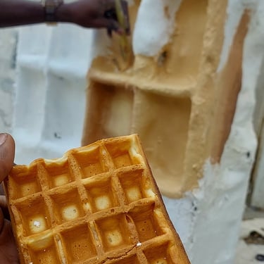 وقد تم الحفاظ على تدرجات لون الوافل الطبيعية بدقة متناهية، اعتمادًا على نموذج حقيقي من أحد فروع الشركة، ليظهر العمل وكأنه منتج حقيقي مكبّر الحجم.