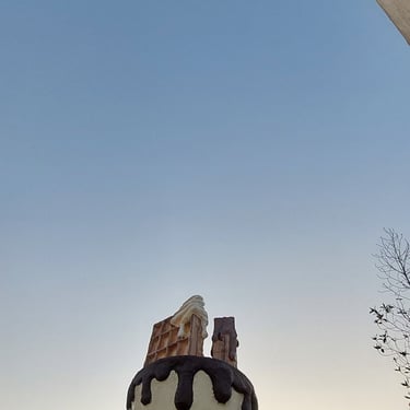 القطعة الأولى جاءت مزيّنة بطبقة آيسكريم واقعية، والثانية بنوتيلا سائلة تنساب بتفاصيل دقيقة، بينما صُمّمت الثالثة وكأنها مقضومة بأسنان حقيقية، لتخلق تفاعلًا مباشرًا مع الجمهور.