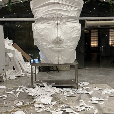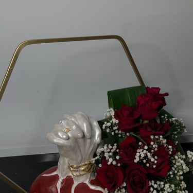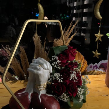 في تجربة فنية غير تقليدية، تم تنفيذ منحوتة "أنف" بحجم لافت، صُممت خصيصًا لتعليقها على الواجهة الخارجية لمحل الورد.