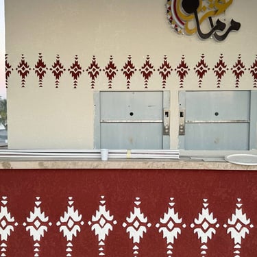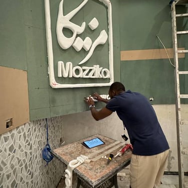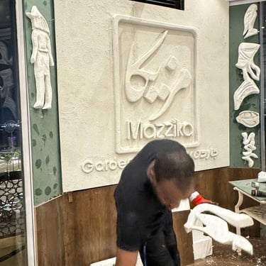 وقد اندمج العمل الفني بسلاسة ضمن الهوية البصرية للمطعم، ليشكّل عنصرًا جماليًا فخمًا يعزّز تجربة الزائر ويمنح المكان حضورًا بصريًا لا يُنسى.