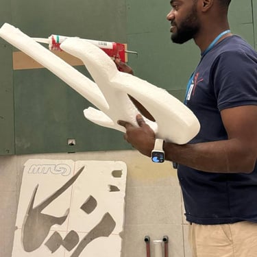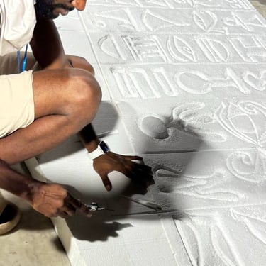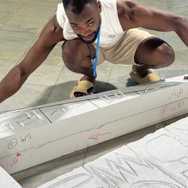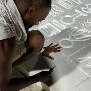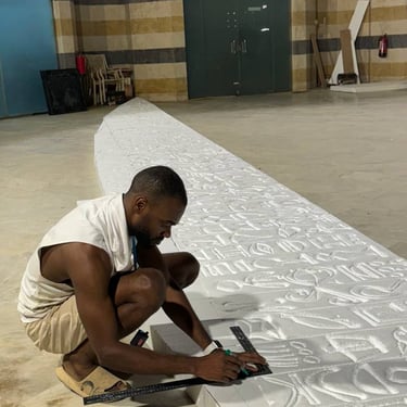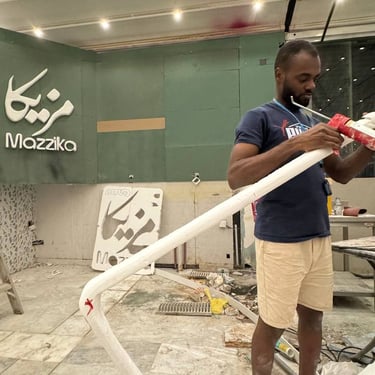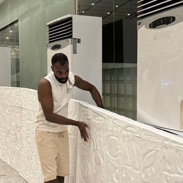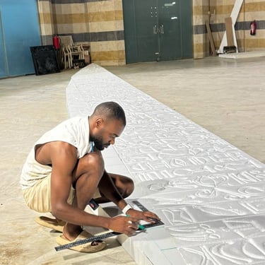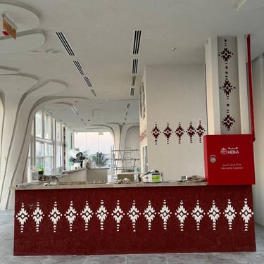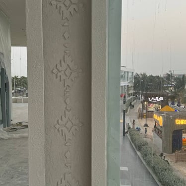 حيث قمت بنحت تصميم العميل وهو عبارة عن نقشة فنية مستوحاة من رمز النخلة، اختُزلت فيها الهوية الثقافية للمكان بروح راقية ومعاصرة.