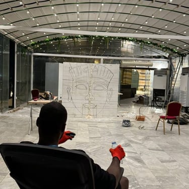 إبراز التفاصيل لإحياء الطابع الفرعوني بروح معاصرةهذا العمل ليس مجرد تصميم داخلي، بل تجربة فنية متكاملة تعيد تعريف العلاقة بين المكان والفن