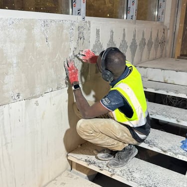بين الفن والهندسة تم تنفيذ المشروع بدقة احترافية تجمع بين: التخطيط الهندسي المدروس تم النحت اليدوي المتقن معالجة الخامات لتحقيق عمق بصري واقعي